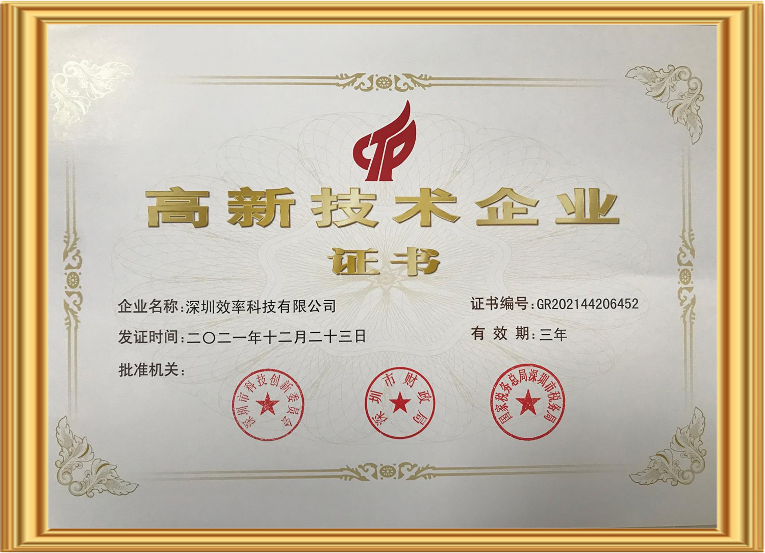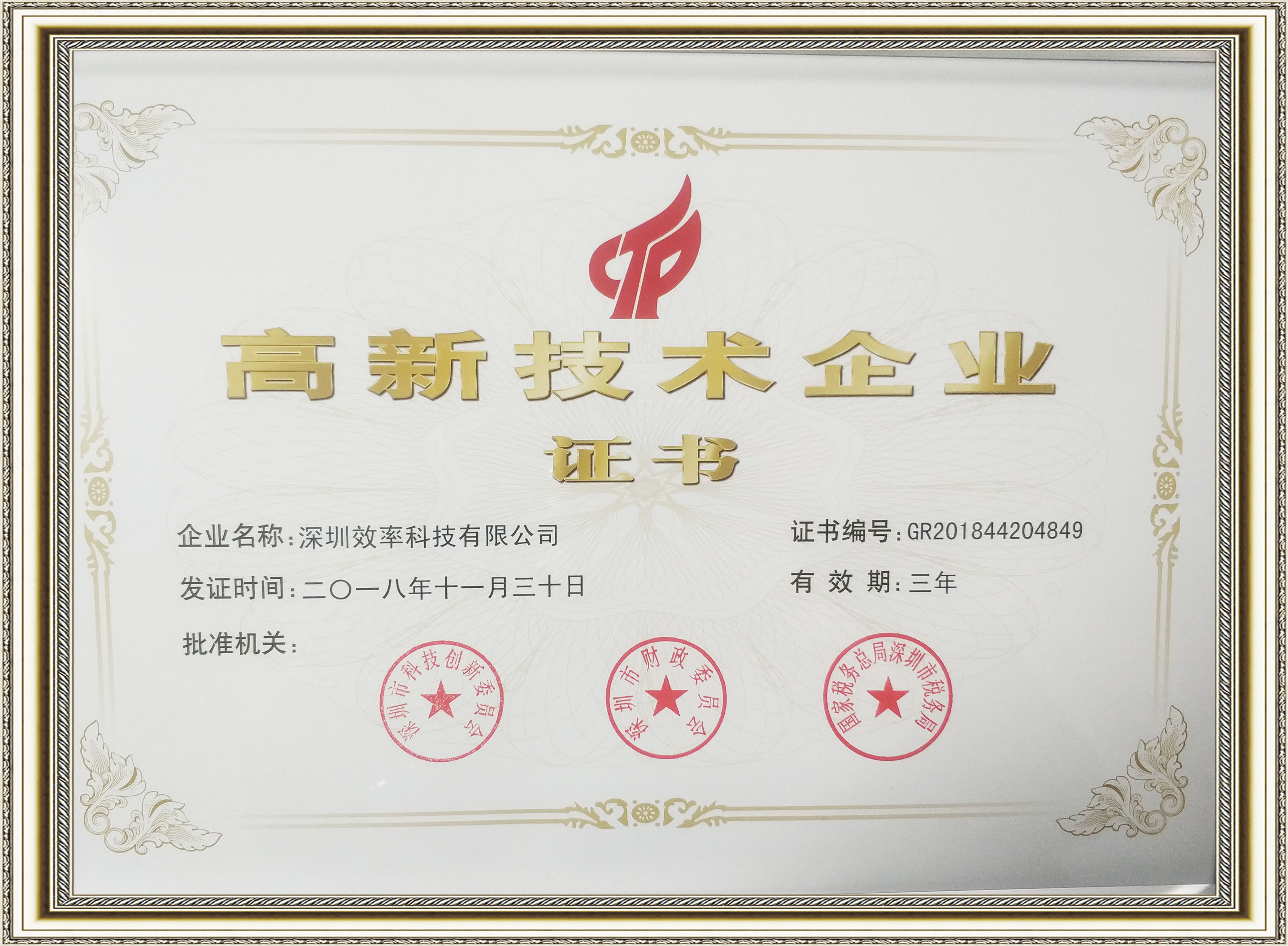 國家高新技術(shù)企業(yè)證書