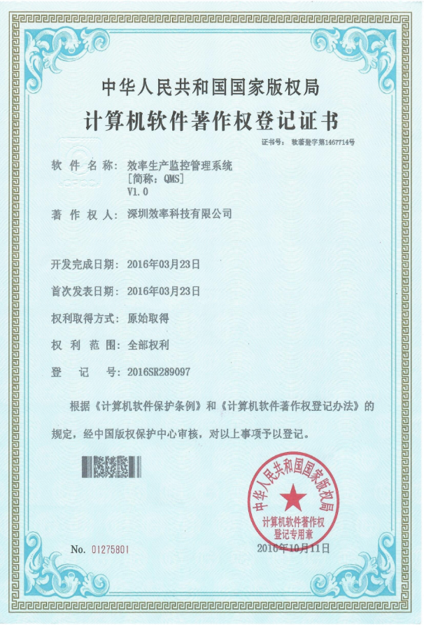 生產(chǎn)監(jiān)控管理系統(tǒng)軟著證書