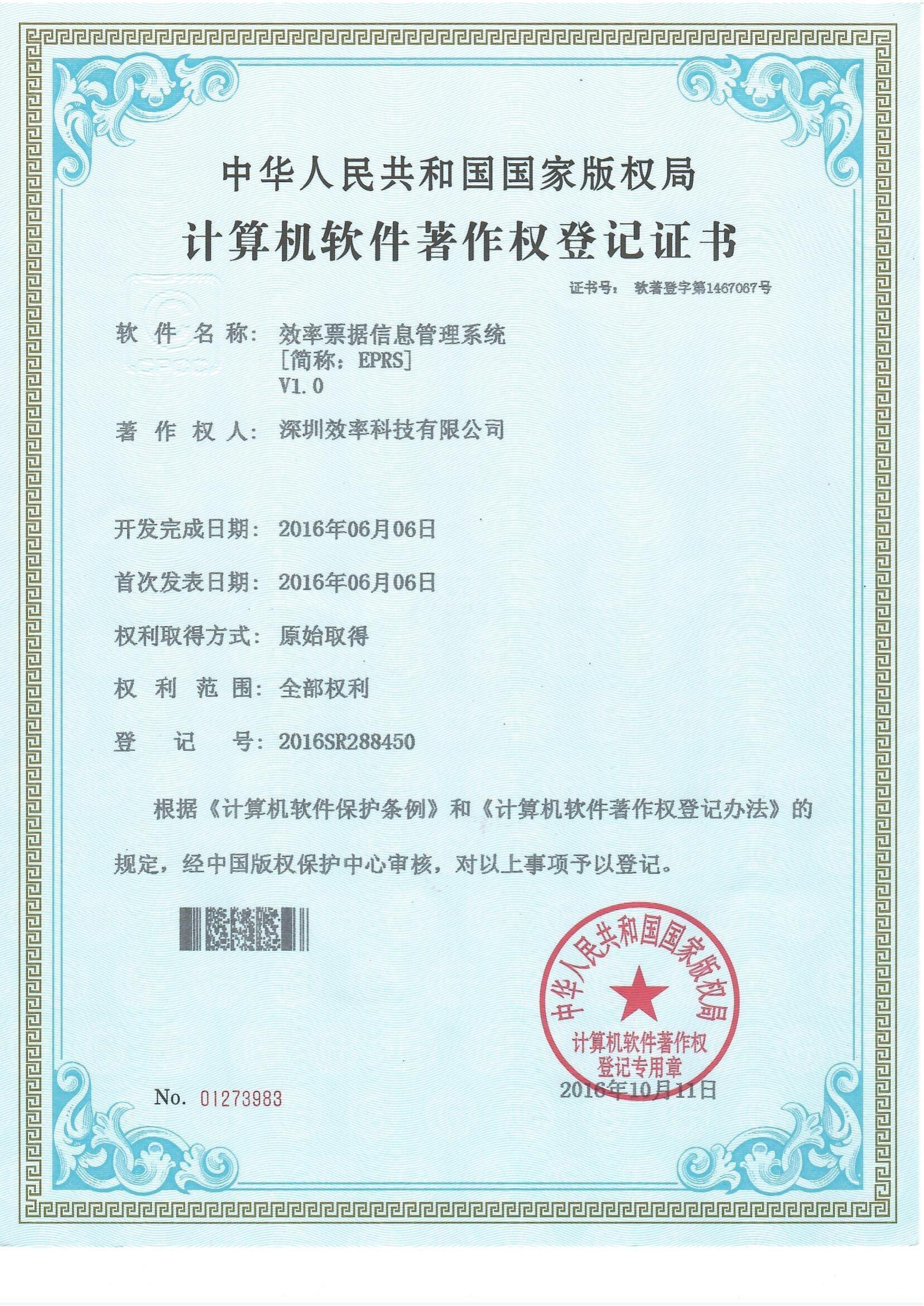 EPRS票據(jù)信息管理系統(tǒng)軟著證書