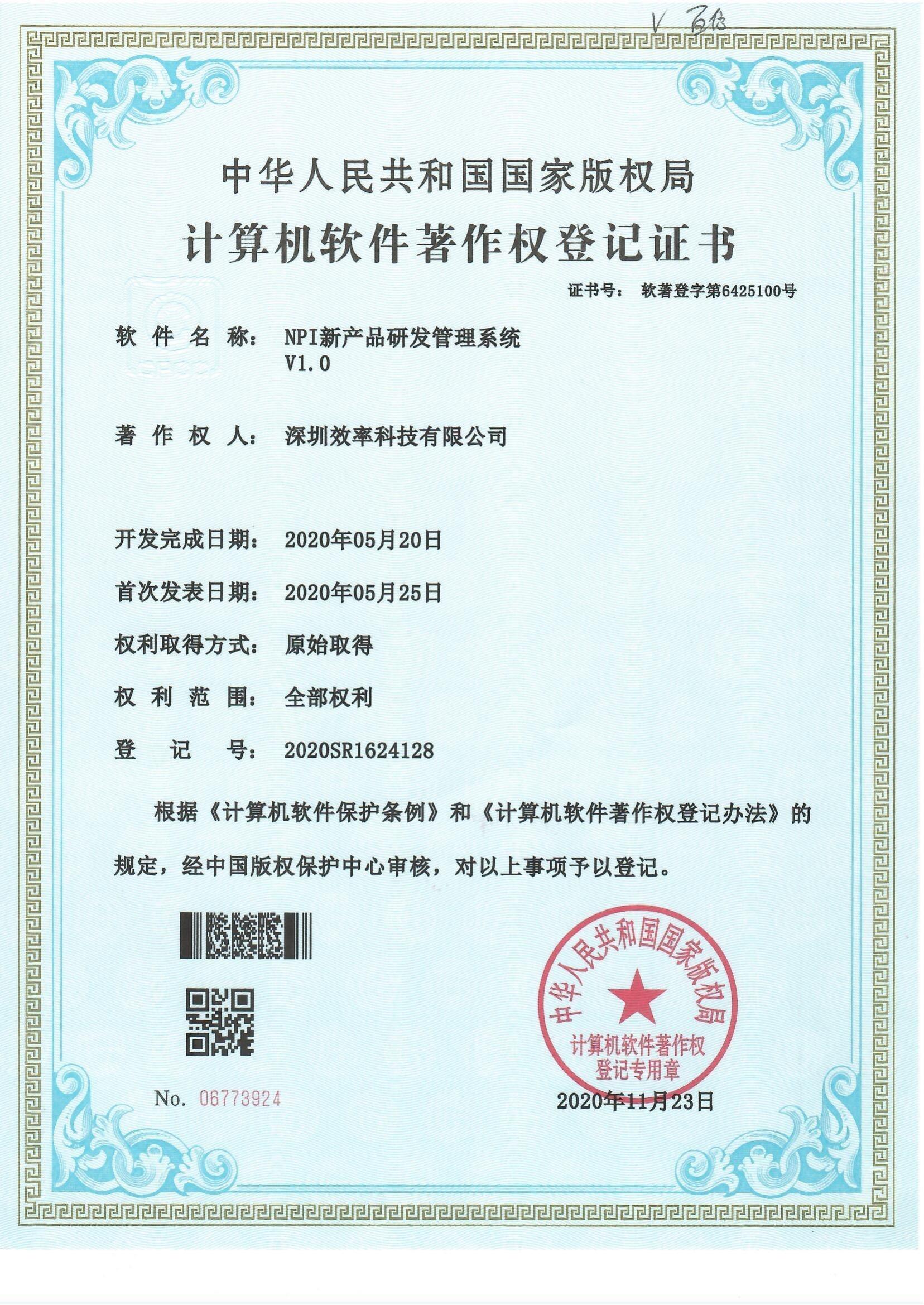 NPI新產(chǎn)品研發(fā)管理系統(tǒng)軟著證書